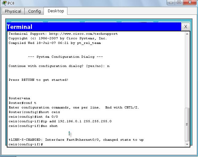 ceiz(config-if)#ip add 192.186.0.1 255.255.255.0 //memberi IP